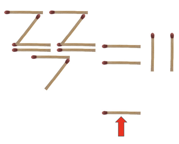 문제는 위 그림과 같은 수식이 있을때, 아래의 화살표에 보이는 여분의 성냥개비로 수식이 성립하도록 만드는 것입니다.