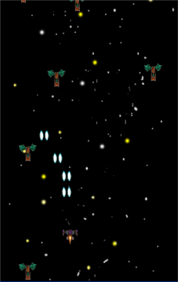 총알은 위로 움직이게 되고 적기는 아래로 움직이게 된다. 패턴 방식에 따라서 적기의 이동을 조절할 수 있지만, 여기서는 교육용 게임이므로 구현치 않았다.