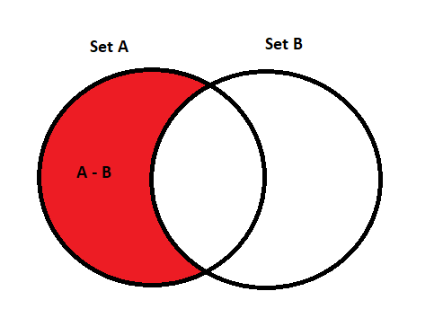 A 집합을 만든다음에, B에 속하는 원소가 A 집합에 있는 경우 삭제를 했습니다. 그러면 A집합에는 차집합이 남아있게 됩니다.